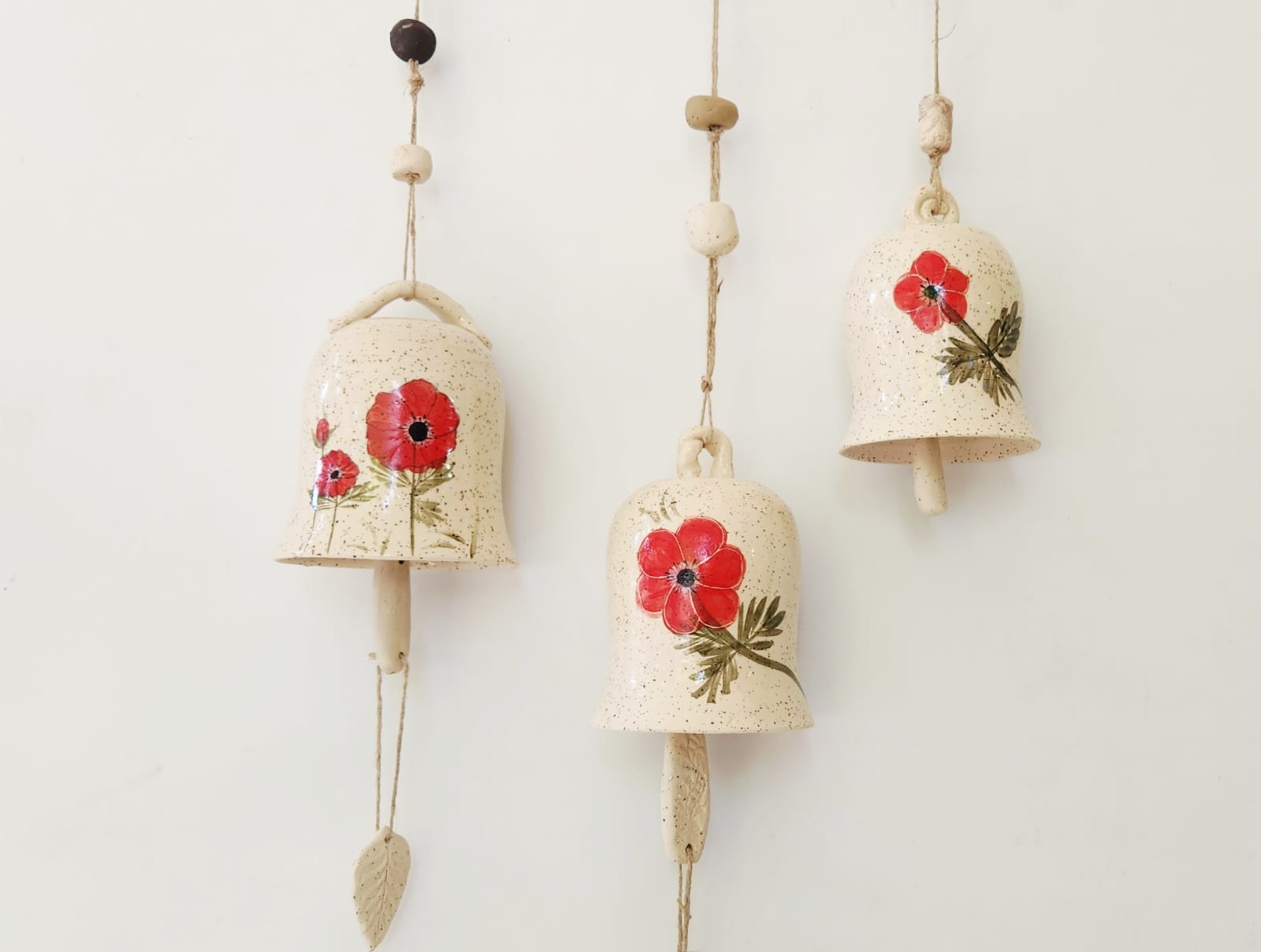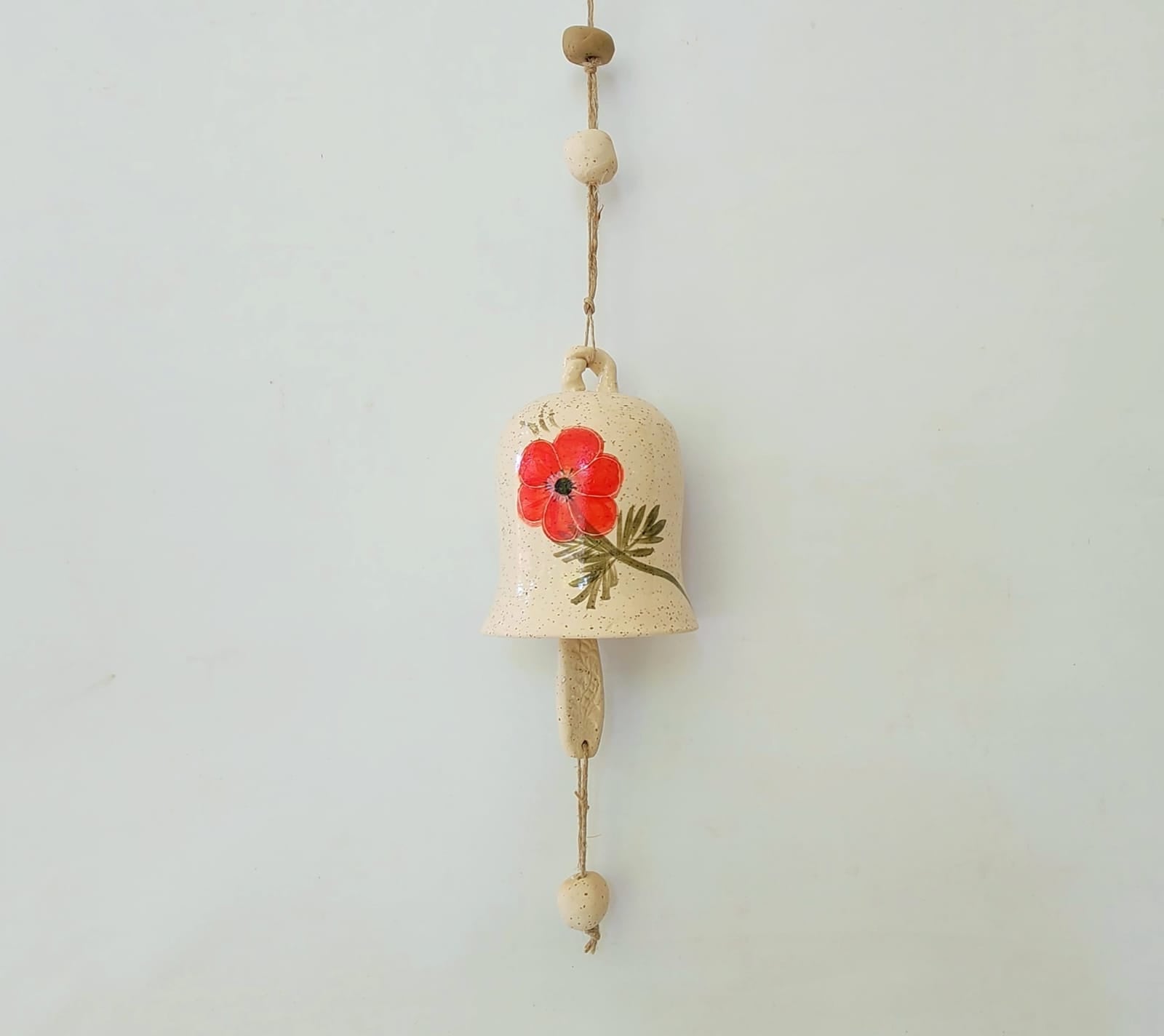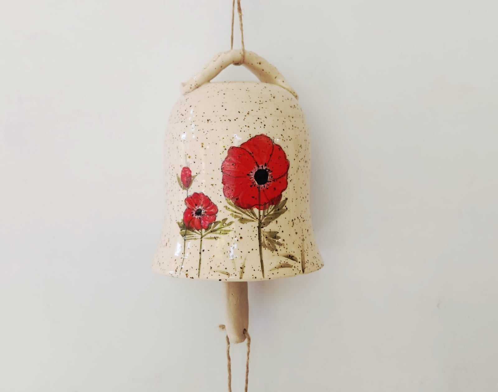 פעמון מקרמיקה עם ציורי כלניות מסביב.